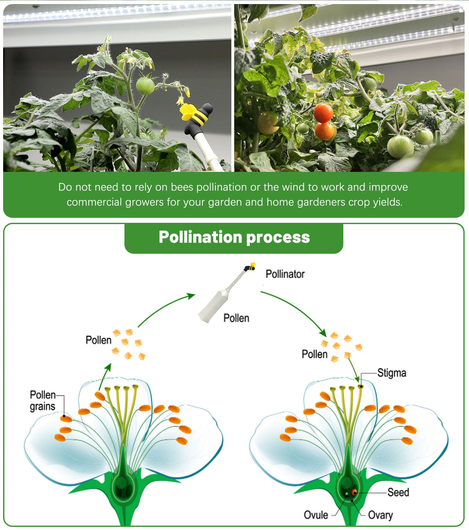 - LIGHTWEIGHT, PORTABLE, AND EASY TO USE: Compact design with thumb-activated vibration ensures precise pollination, perfect for home gardens, greenhouses, and indoor setups.